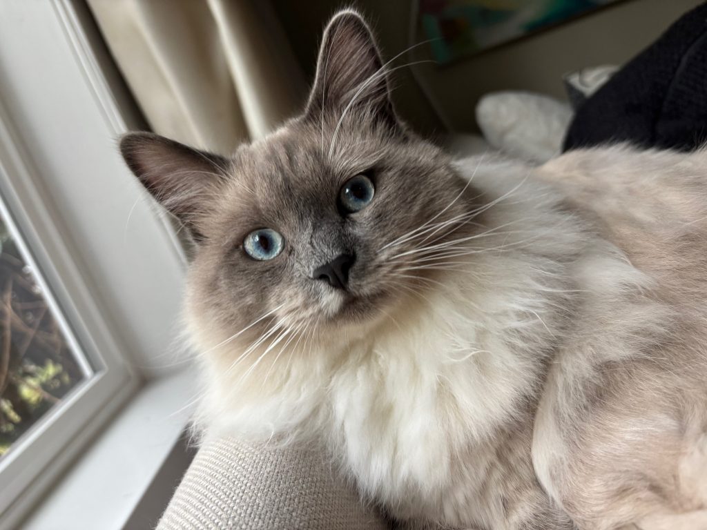 If you ever find yourself doing a double take at what looks like a very large cat strolling by, don’t worry—you’re not imagining things. It might just be Miro! As a Ragdoll Cat, he’s already tipping the scales at nearly 16 pounds… and he’s not even a year old yet.